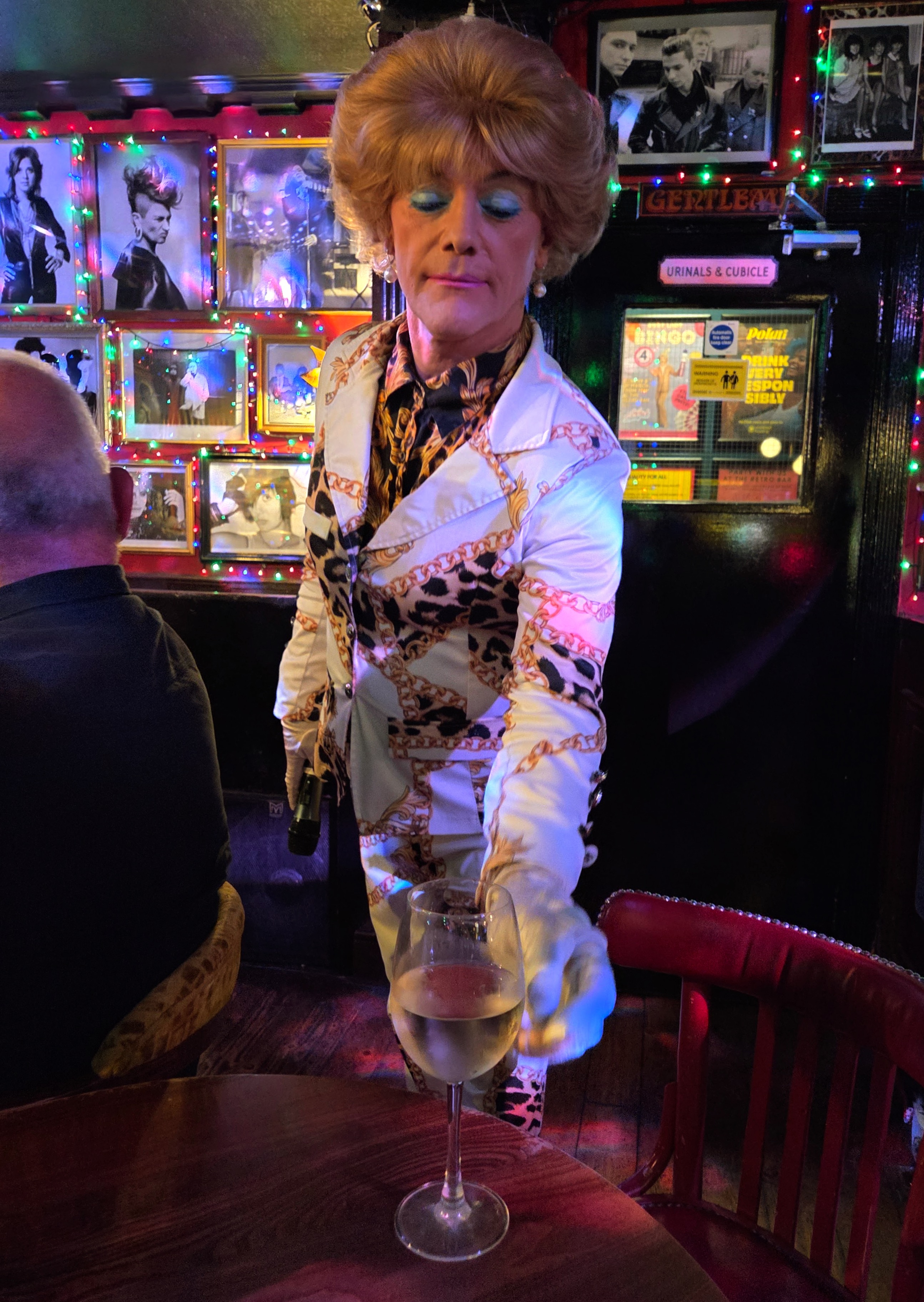 A couple of photos of Sheila’s short, three-act play entitled something like Drag Queen Drinks Glass of Sauvignon Blanc.